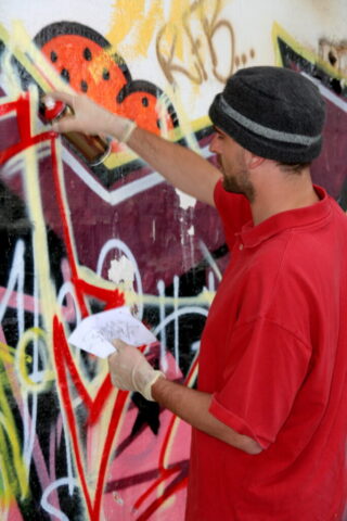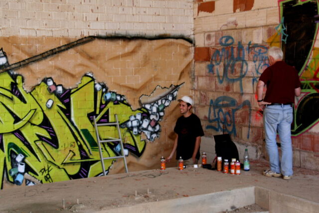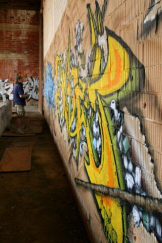 An dem besagten Wochenende war in den Hallen viel los. Weitere Teams waren am Werk, die die Wände mit neuen Graffitis verzierten. Man merkte in jeder Sekunde, dass Profis am Werk waren. Die Fotos geben einen Einblick …