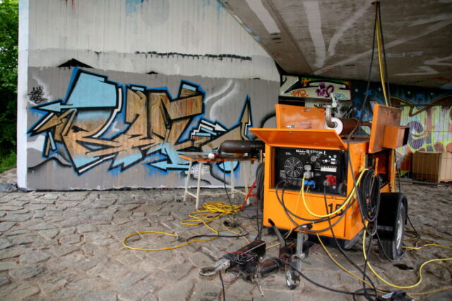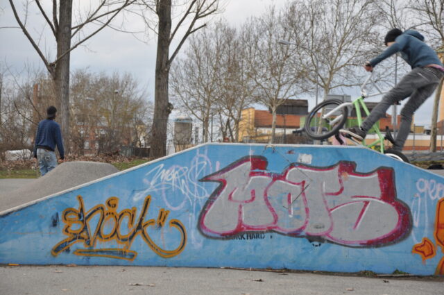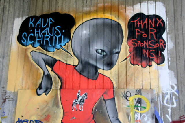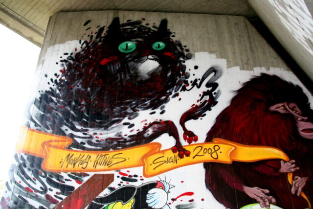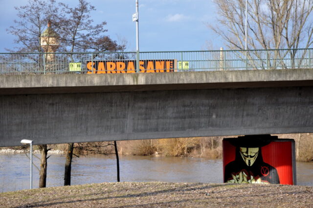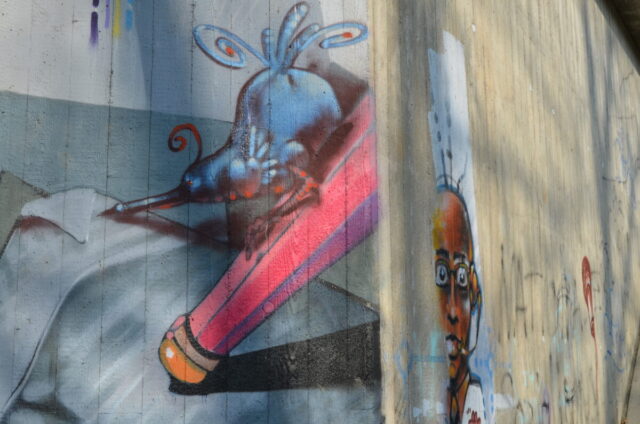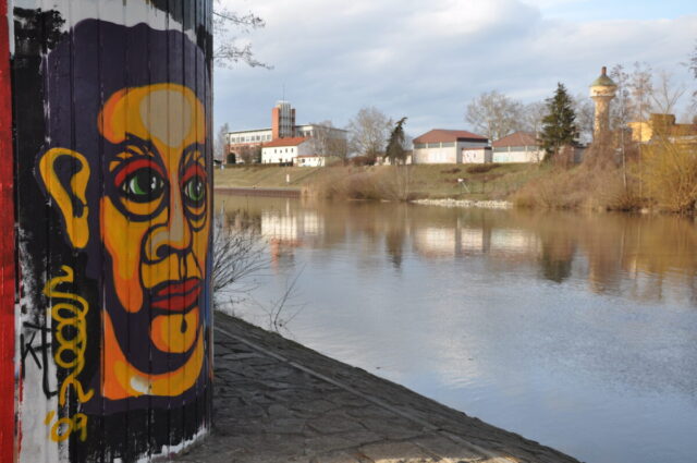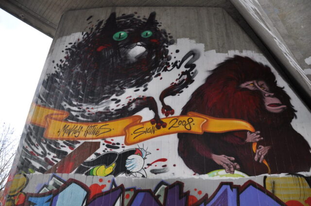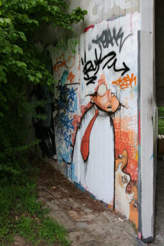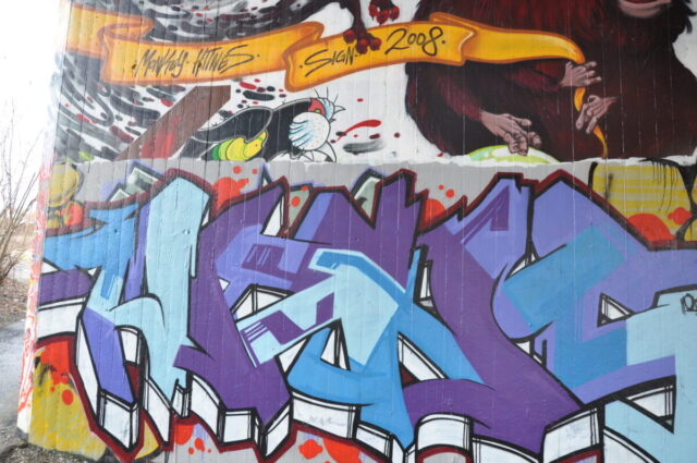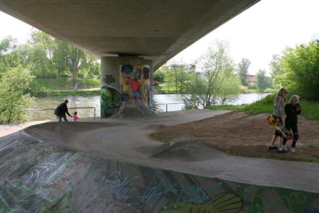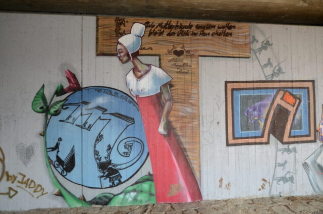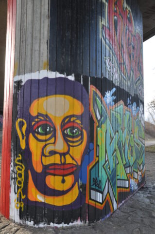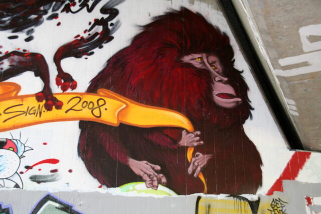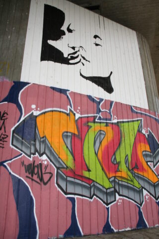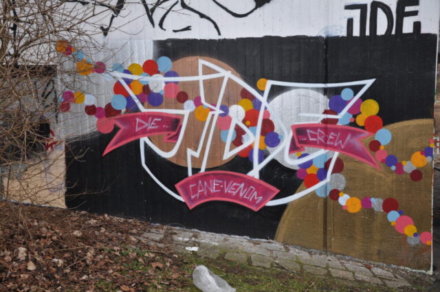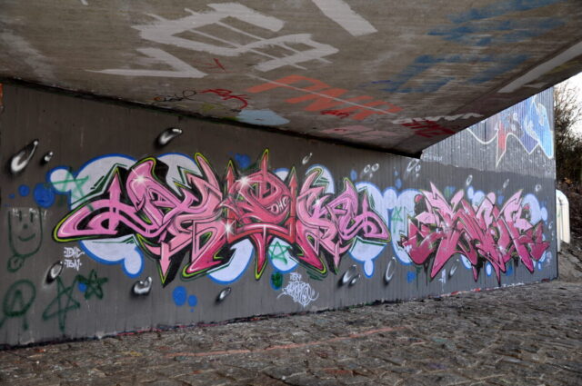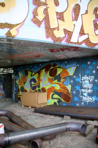 Sie führt mit einer Länge von 12o m den Regensburger Ring über den Main-Donau-Kanal. Was beidseitig unter der Brücke zu sehen ist, verdient große Aufmerksamkeit. Wunderschöne „offizielle“ Graffitis von Cane, Venom & Co., die allerdings schon mehrmals übersprayt wurden. Es wäre zu aufwändig, ständig die aktuellsten Ausschmückungen zu fotografieren. So beschränke ich mich weitgehend auf die der letzten Jahre.