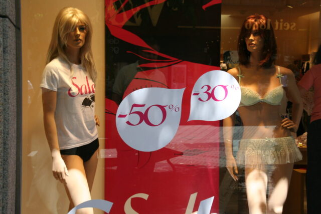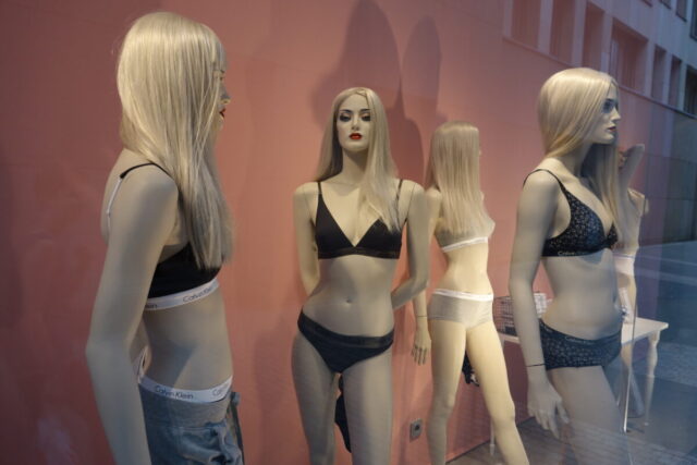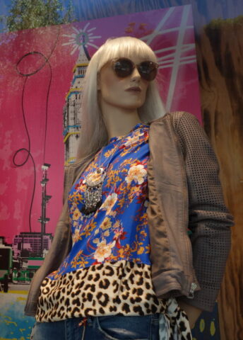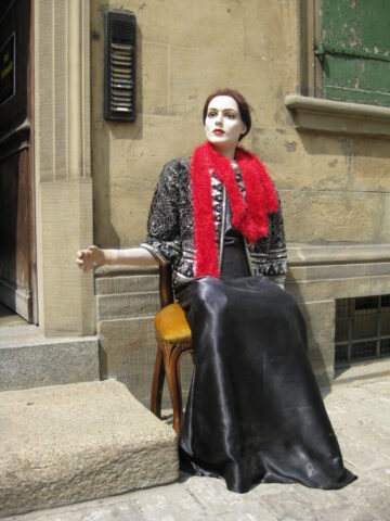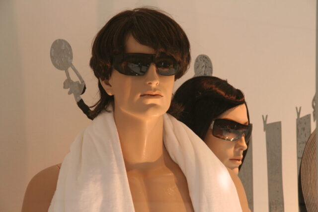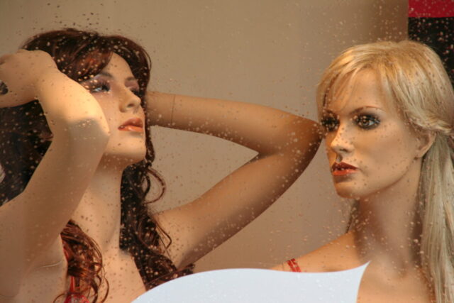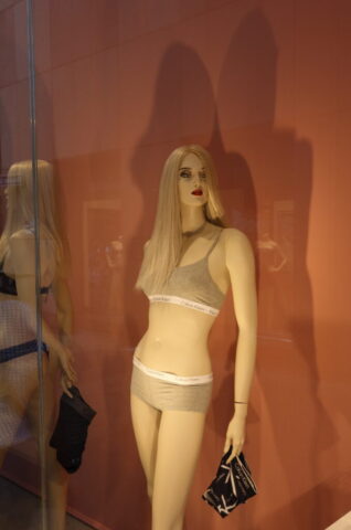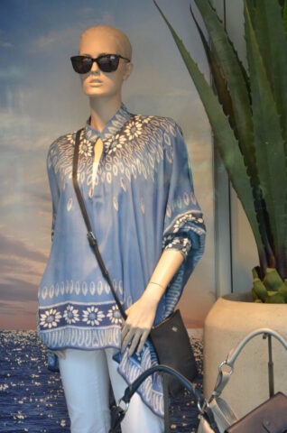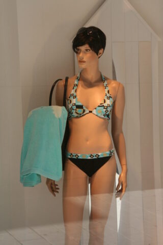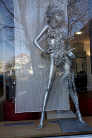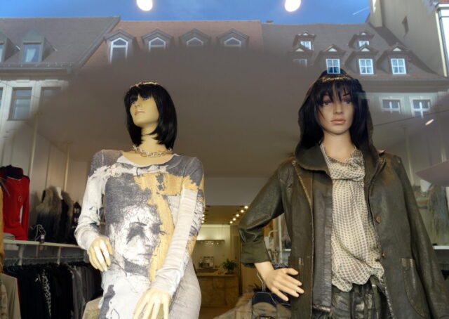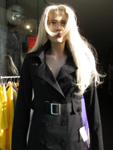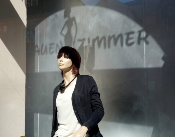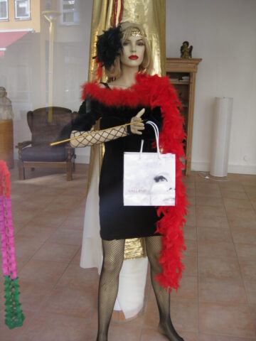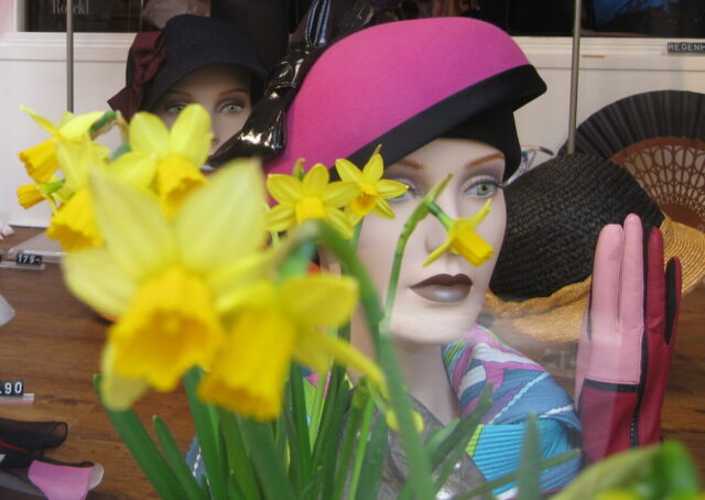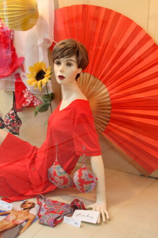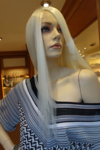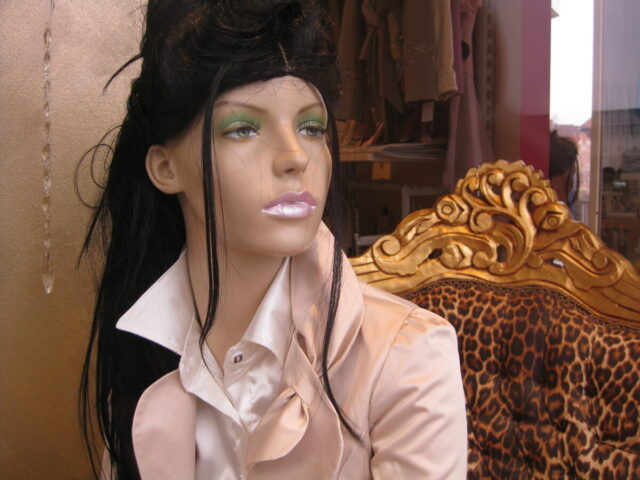 Kritik muss ich insofern anbringen, weil es kaum Schaufensterpuppen gibt, die über die mageren Modelmaße hinausgehen. Übergewichtige Personen werden kaum abgebildet. Jedenfalls bin ich froh, dass ich schon vor vielen Jahren mit dem Fotografieren dieser Figuren anfing, als noch die Natürlichkeit der Darstellung im Vordergrund stand. Und die wurden je nach Jahreszeit eingekleidet. Besonders festlich in der Weihnachtszeit. Kritik gibt es aber auch, weil meist nur weibliche Puppen für aktuelle Mode werben, seltener Männer, die bekanntlich nicht so modebewusst sind. Auch habe ich nur ein- oder zweimal eine männliche Schaufensterpuppe mit Echthaar gesehen und zwar in Rottach-Egern (vielleicht, weil Haarausfall weit verbreitet ist? *g*). Siehe ziemlich weit unten. So hat sich mein Faible für weibliche „Darsteller“ zwangsläufig entwickelt.