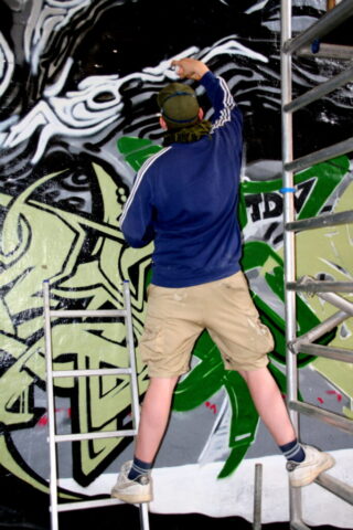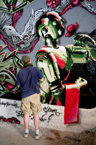Das war eine faszinierende, spannende Sache, den Entstehungsprozess in fast jeder Stunde mit unserem Kamerateam verfolgen zu können und sie beiläufig auch über das Videoprojekt und ihren sozialen Hintergrund zu interviewen.